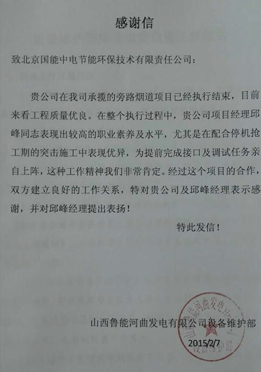 當(dāng)前位置: 國(guó)能中電公司動(dòng)態(tài)> 山西河曲EPC項(xiàng)目受業(yè)主贊譽(yù)